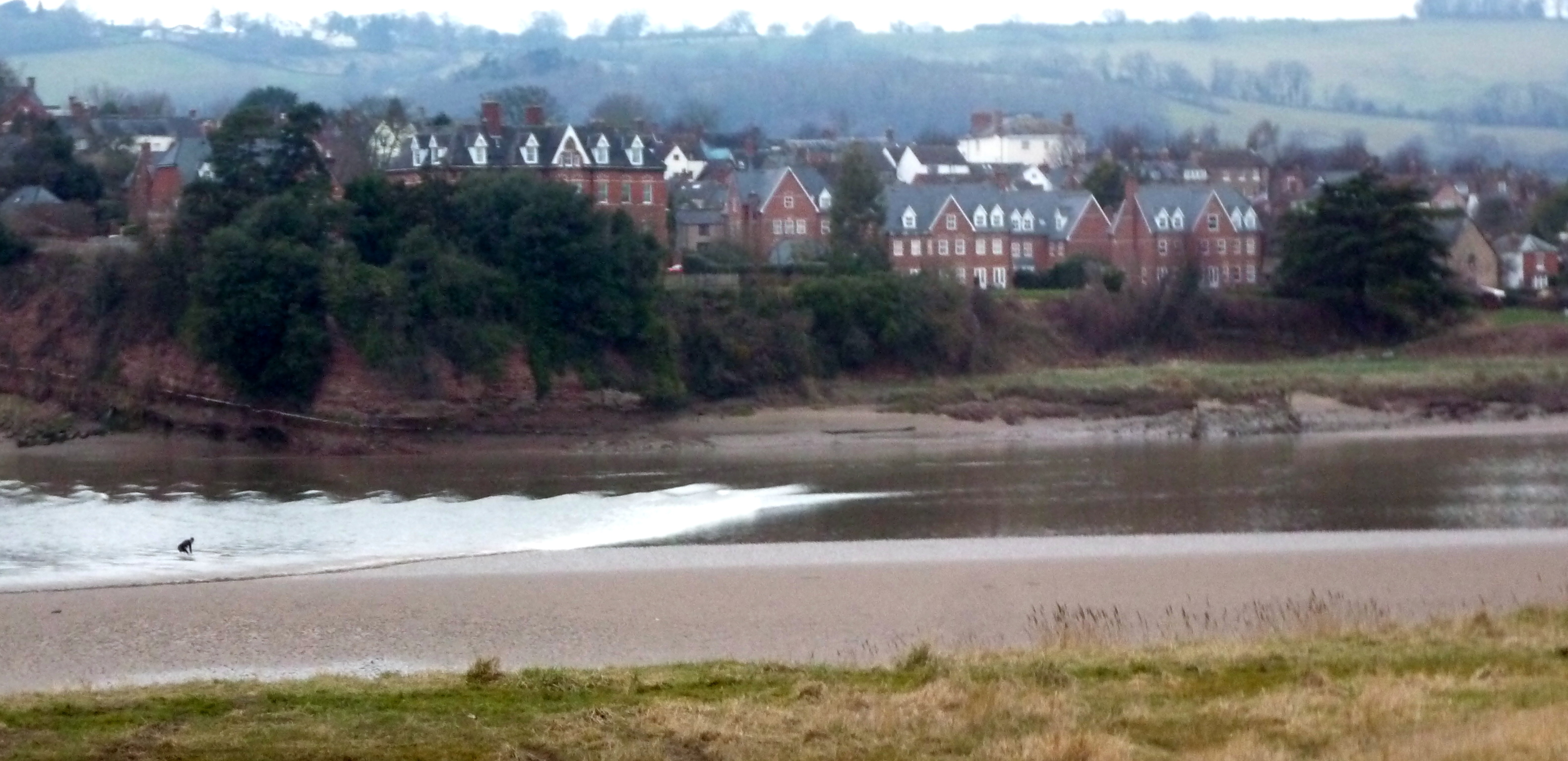 So back to the surfer. He waited. And as tick followed tock followed tick followed tock…. suddenly, he began to run into the mud, and downstream towards the water. And I saw what he had seen – a frothing white arrowhead of water making its way up the silent river. He plunged in on his surfboard and body-boarded for about ten seconds. The wave was the lowest I have ever seen in my life. It must have been the height of your ordinary day-to-day bore. Not more than a foot high, I reckoned but still astonishing – still a force of nature.