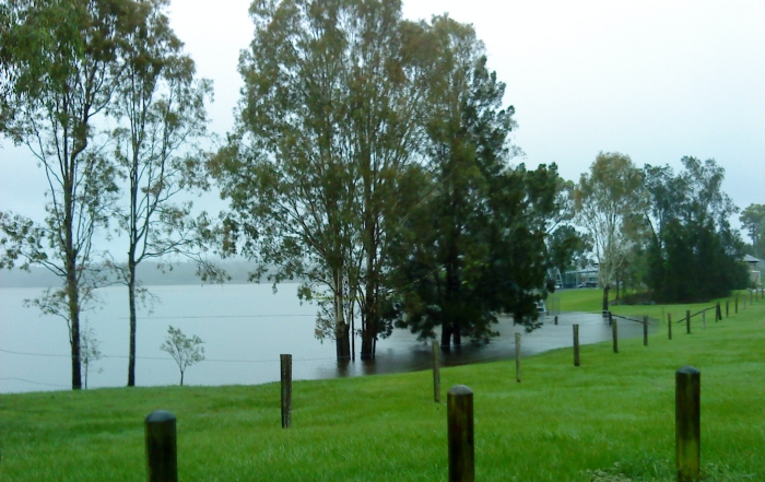 They are evacuating Strathpine, which is our nearest large shopping centre, and the local radio was also telling us of several major roads being closed in our vicinity. The back-road that I mentioned in an earlier comment, on which I returned from the Doctor’s, was closed hours ago. So we thought we’d do a little rubber-necking and have a look at the overflow from our local reservoir, Lake Samsonvale.