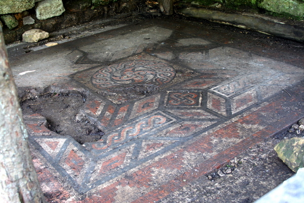 Beneath the tarpaulin, the remains of a Roman mosaic which once graced a villa on the edge of the woods just near a deep, trickling stream. It was damaged and filthy but a pretty incredible find, especially as it was once walked on by a Roman family – maybe a retired centurion from the Twentieth Legion at Glevum.