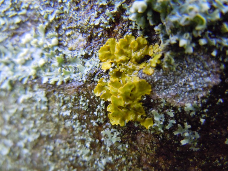 Correction on #4 : Platismatia glauca? with Common Yolk lichen to the right of it? I have it growing on rocks by the pond!