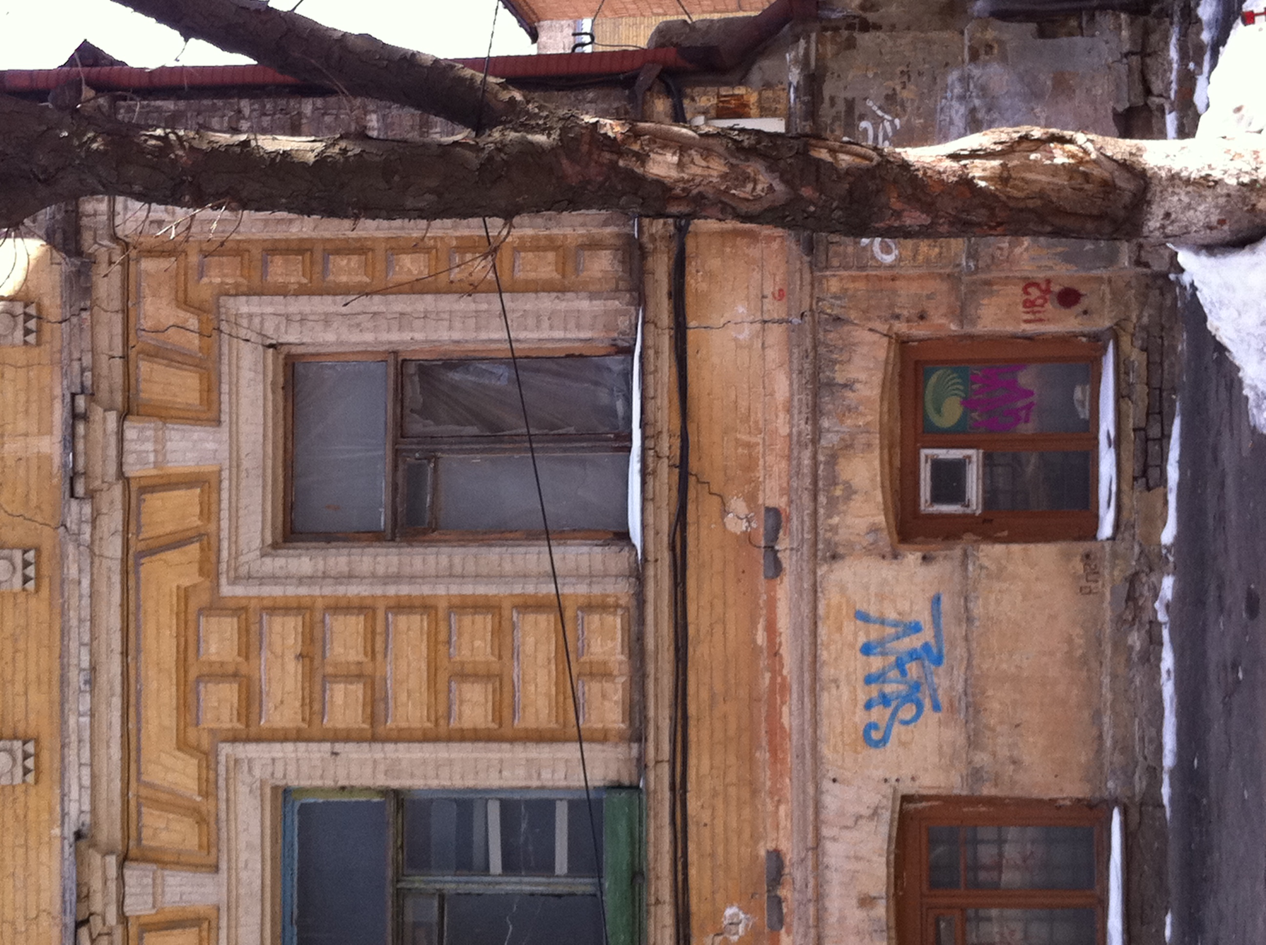 I was staying in a business-class hotel. Right next door was he building shown in the last two pics – and there were people living in it!