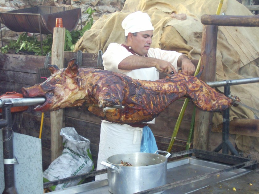 I would take issue with the ‘gas canister’ bit – absolutely not kosher IMHO. Hunt down boar, light big fire and roast it is the OZ way, but Ms Jardine seems to be taking her first tentative steps towards The Faith.