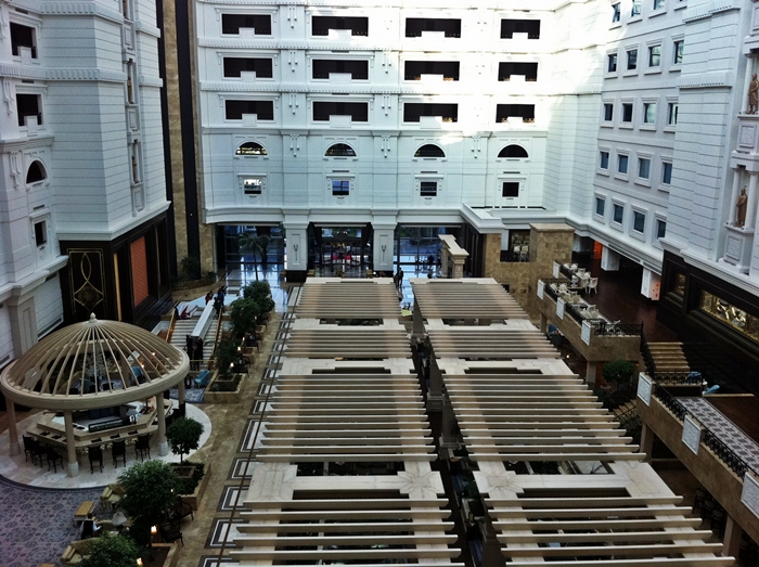 This is the hotel in Almaty – not at all what I expected. The thingy in the middle is a for-real Palm Court – I’ll try to get better pics later in the week…