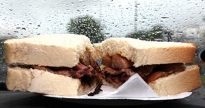 the bustling high street. His head pounded as he crossed the road, cut down a side alley and through to the large car park for the many commercial buildings in the area. There in one corner was a roadside van. It was hardly cordon bleu but right now, it looked like The Ritz. Sausage and bacon sandwich in hand, he trudged on towards the taxi rank. The fried food began to work its magic on his delicate digestive system.