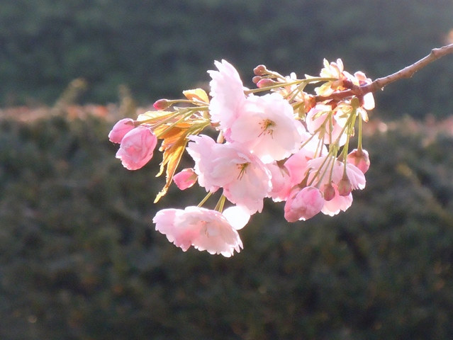 It may not last long, especially as the weather will be cold and there’s a fair wind, but the cherry blossom is looking wonderful. This evening as the sun went down it looked beautiful against the yew hedge, with the sun shining through it.