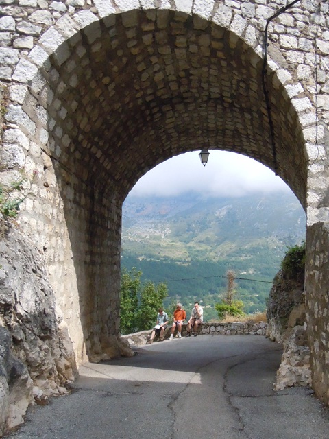 So there I was, driving on the wrong side of the road, my feet operating the pedals (which are of course in the same order as they are at home) while my arms were trying to remember that the gear stick is on the right, the opposite side to what I am used to, whilst trying not to make my darling husband too nervous as he issued directions to me, often three times, with increasing volume, sometimes confusing his left and right. You can imagine, therefore that, after an early start (5 am) and little food (I couldn’t face the BA in-flight breakfast and the almond croissant at Heathrow terminal 5 seemed a very long time ago) I was starting to become a little tense. The roads are narrow in Southern France, after you leave Nice and start going uphill into the mountains, and driving on the wrong side of the road in a car to which I was unaccustomed (did I mention it was a Megane convertible, with an overly small boot, especially with the roof off?) made me feel I was right out in the middle of the road, while Cycloman kept telling me that I was about to hit the kerb, or go off the side of the mountain. After an inadvertent wrong turn in a village somewhere en route to our destination I lost the plot and parked and insisted on lunch.