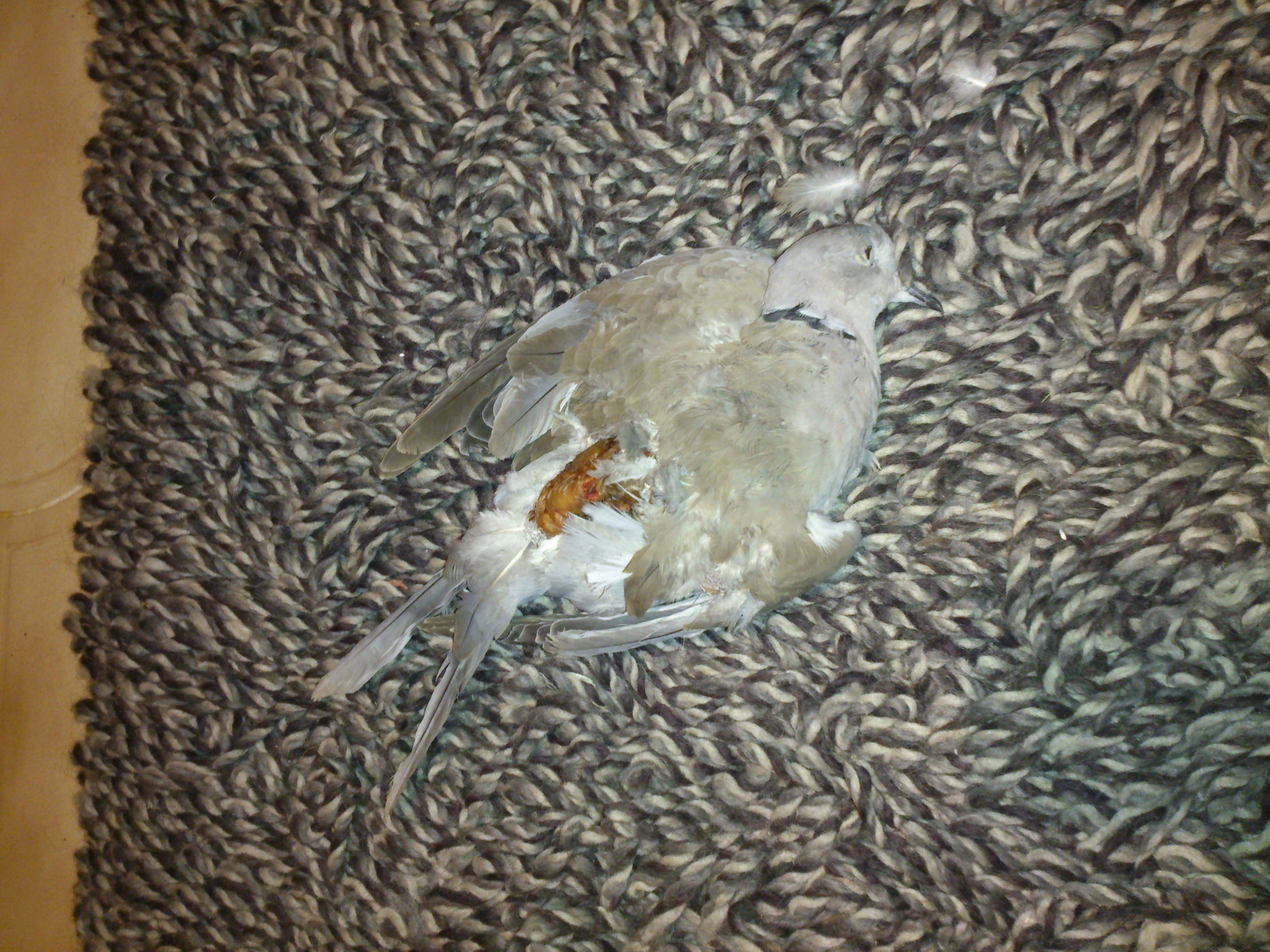 Poor bird. It looks like a ring-necked Dove, Gaz.