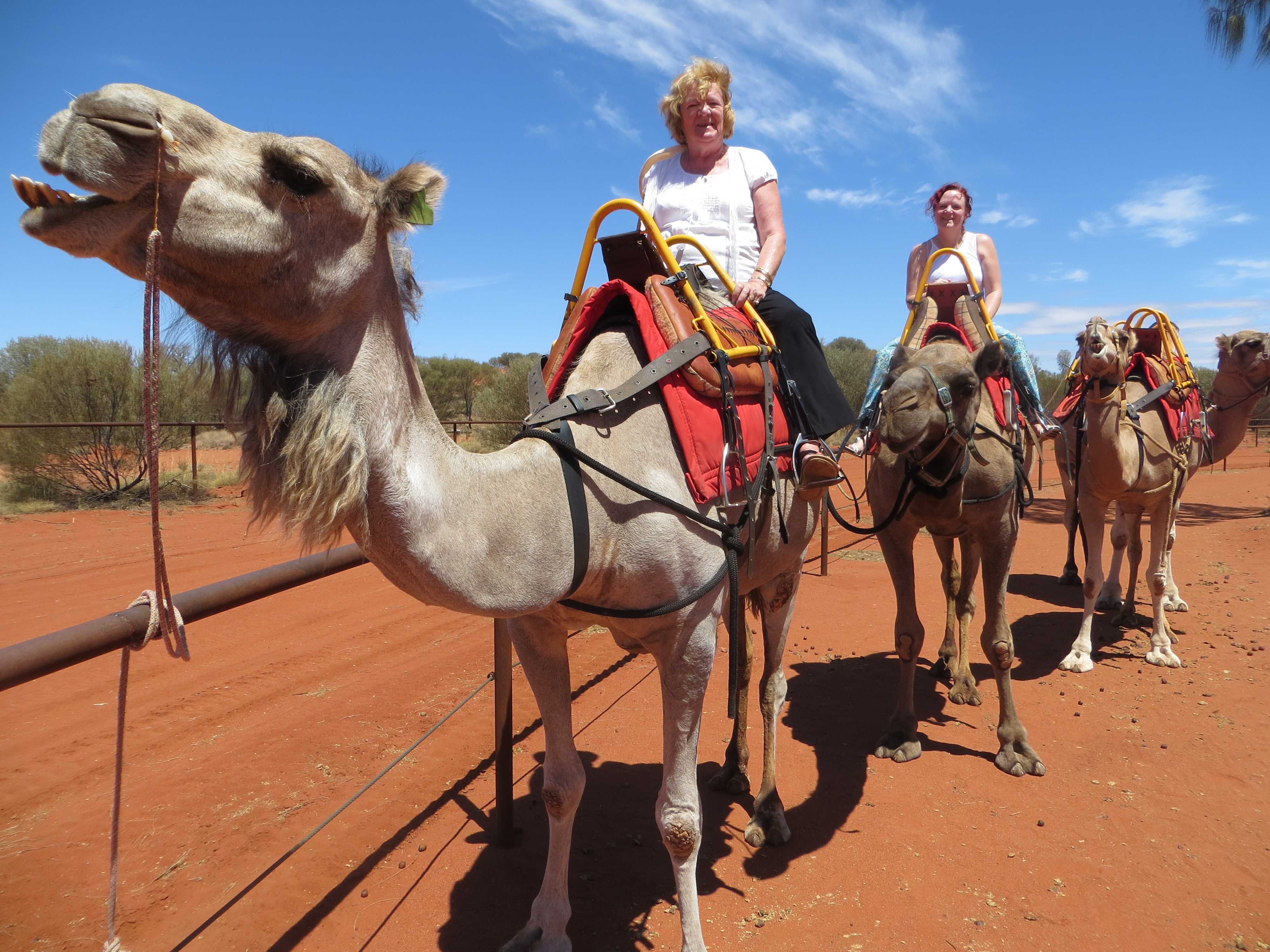 A good few months ago, Boadicea mentioned that she had taken a visiting friend to see Uluru (Ayers Rock) and Kata Tjuta (The Olgas) and promised to post a picture of herself mounted on a camel, of which we have over a million in The Red Centre.