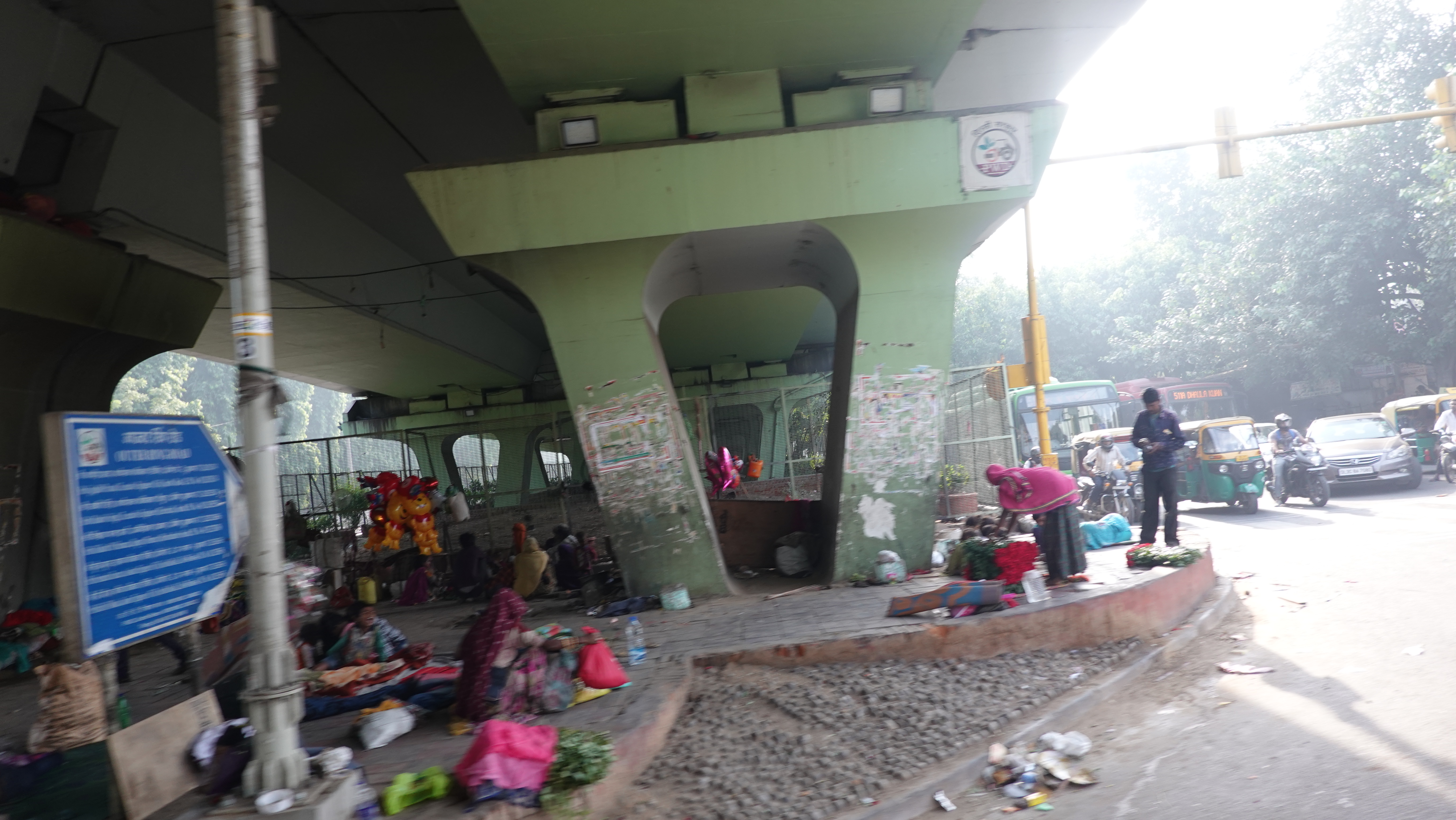 Underneath the Arches: Delhi style. In this case underneath a flyover. The space under some flyovers is fenced off to stop people camping under them.