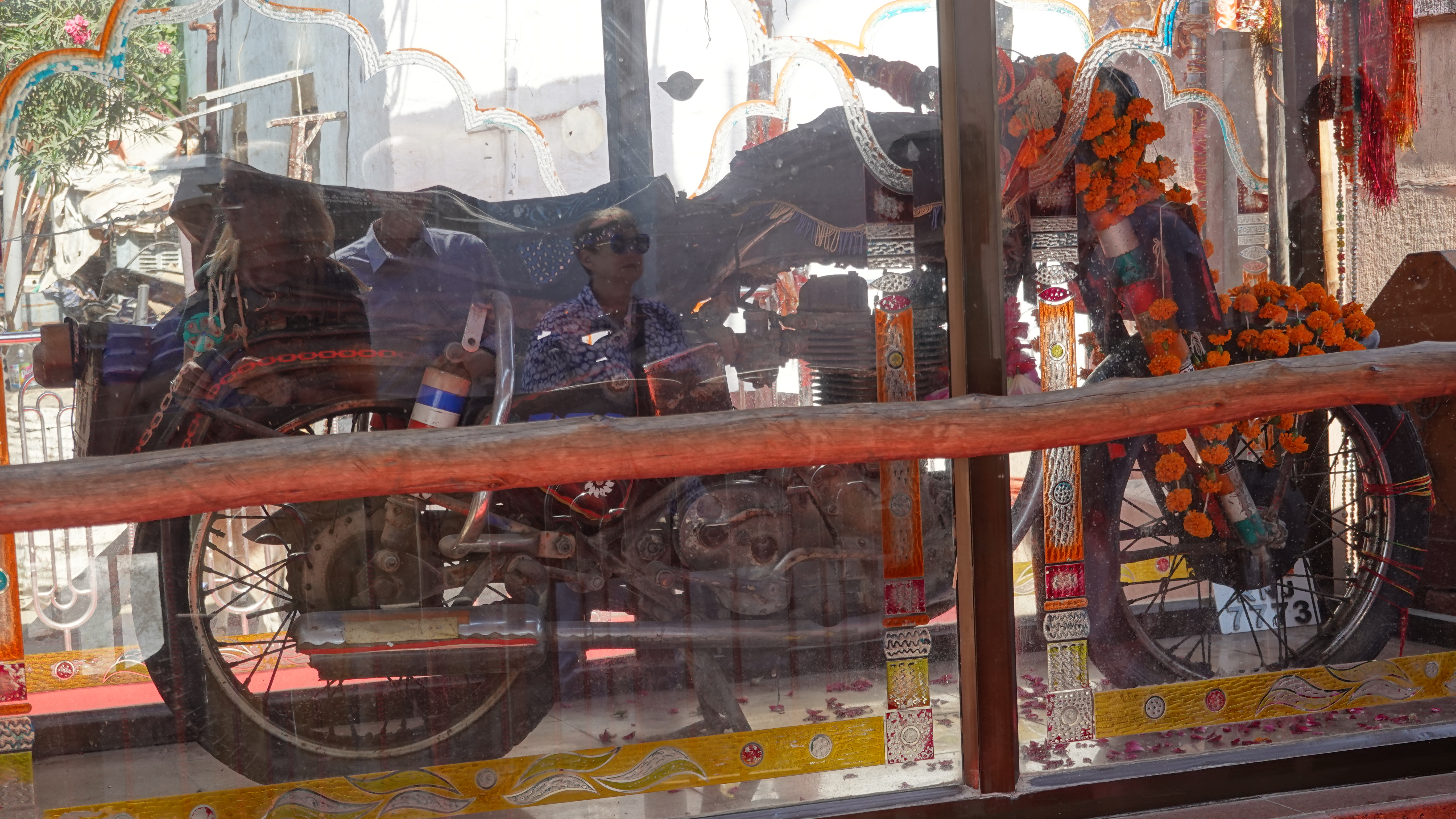 I know this is a very poor photo – but I can’t resist the story about a young man who loved his Harley Davidson. Unfortunately, he came off his bike at this spot on the road to Jodhpur some twenty years ago and died. The police took his bike back to the station, but the next morning it had gone and was found here. They took it back to the station, locking it a cell, twice more and it returned to this spot each time. The father asked that the bike be left at the spot where his son had died, and being India, the police complied. It is now a shrine, with all the usual paraphernalia of drums, incense and the rest – along with the usual stories of people being slowed down and saved by a phantom bike rider.