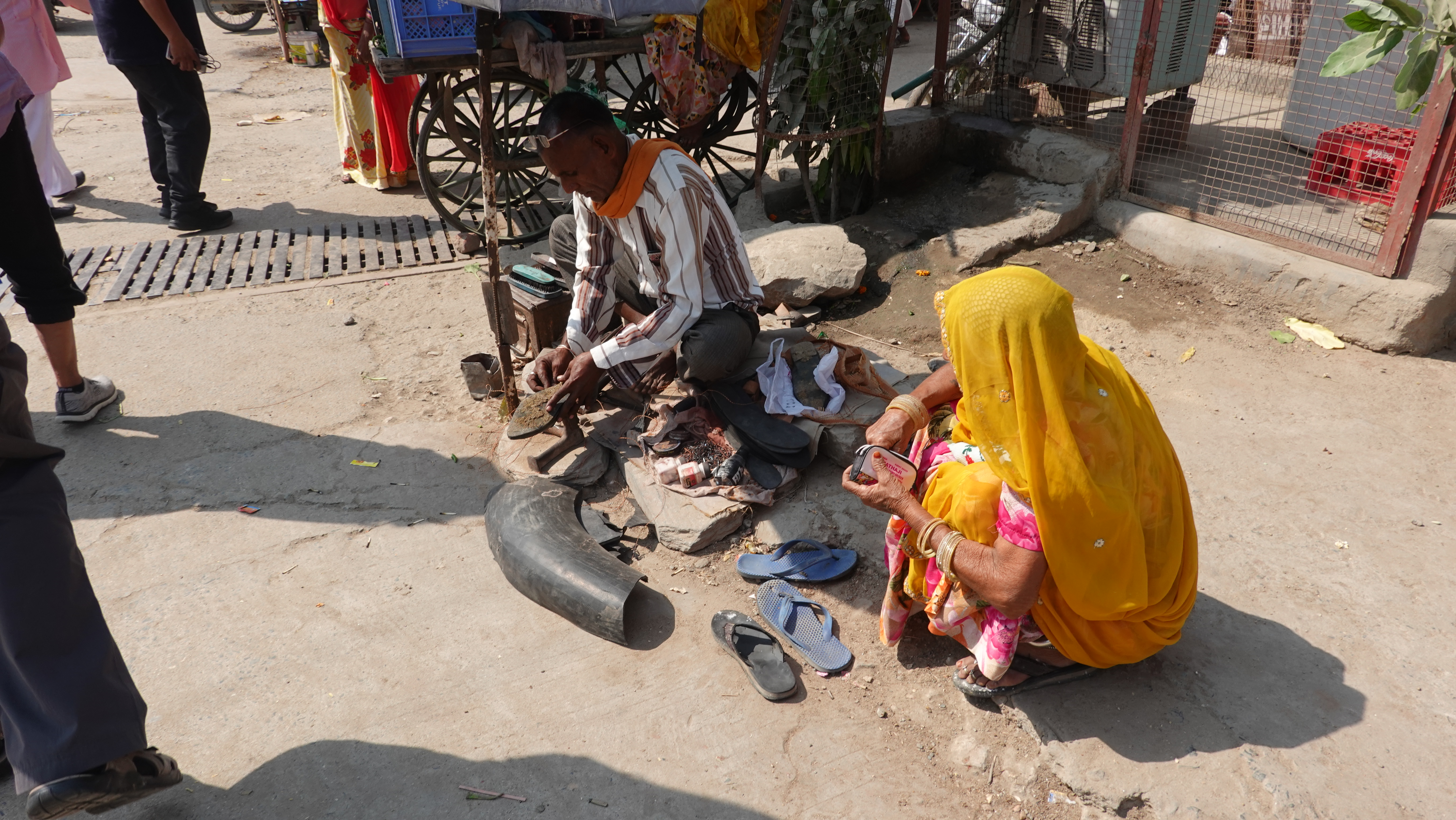 Beggar with a child – but everywhere else were people working by the side of the road or in garage sized places: