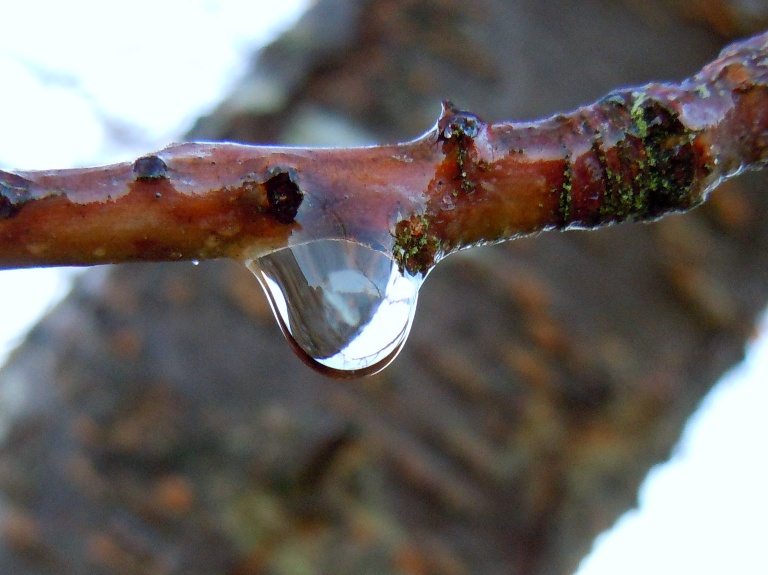 Fog, frost and no sunshine this morning. The de-frost came quickly, covering the cherry tree in sparkles of light. Even on a dull day, if you look hard you’ll find something beautiful.