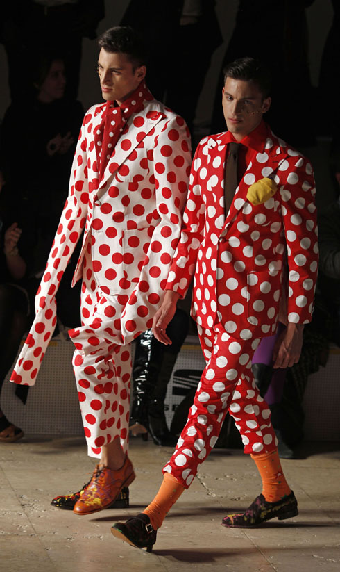 Models present creations by fashion designer Shunnoz-Tekasala as part of his men’s Autumn/Winter 2010/11 fashion collection during Lisbon Fashion Week March 14, 2010. REUTERS/Jose Manuel Ribeiro (PORTUGAL – Tags: FASHION)