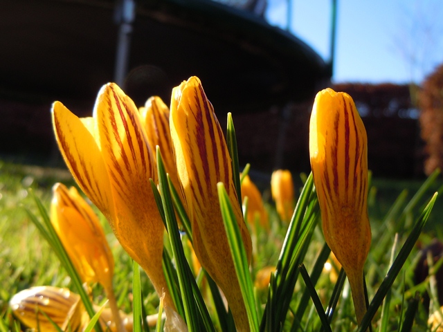 In the front garden the canary bird is singing its colour against the acid of the euphorbia.
